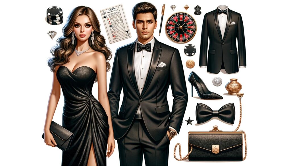 Evening dress demands formal and elevated choices, given the casino’s sophisticated atmosphere after dark. Men wearing dark suits with white shirts and classic ties or bowties project refinement. Women should consider evening gowns or sleek cocktail dresses in dark, rich colors like black or deep red. Luxury accessories, such as a pearl necklace or diamond studs, enhance the look’s elegance. Matching footwear, like polished Oxfords for men or elegant closed-toe heels for women, completes the outfit while ensuring compliance with the casino’s dress standards.